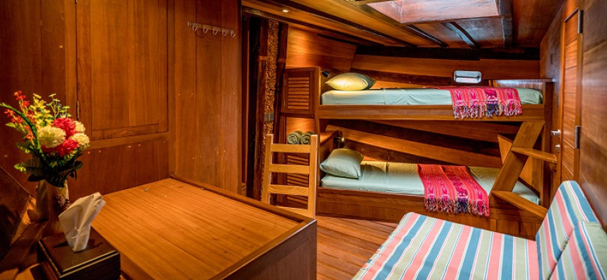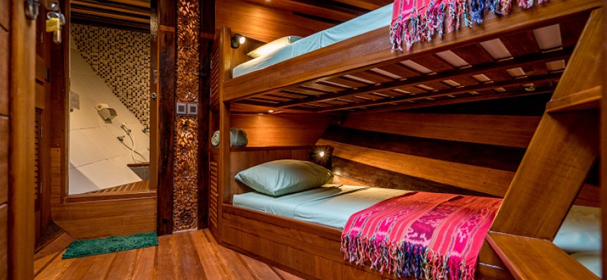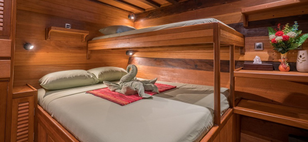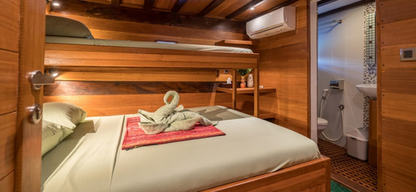 SMY Oceanic have 6 double cabins, all with 90 cm extra bunk, AC and ensuite: